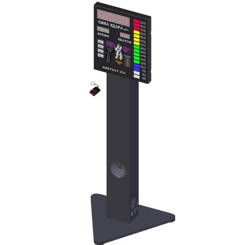 Оснащён большим информационным табло и световым столбиком, отображающем силу нанесённого удара.